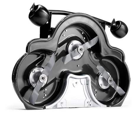 - The cutting deck is equipped with pivoting wheels for extra smooth operation when making turns. The wheels also prevent damages to the lawn surface.