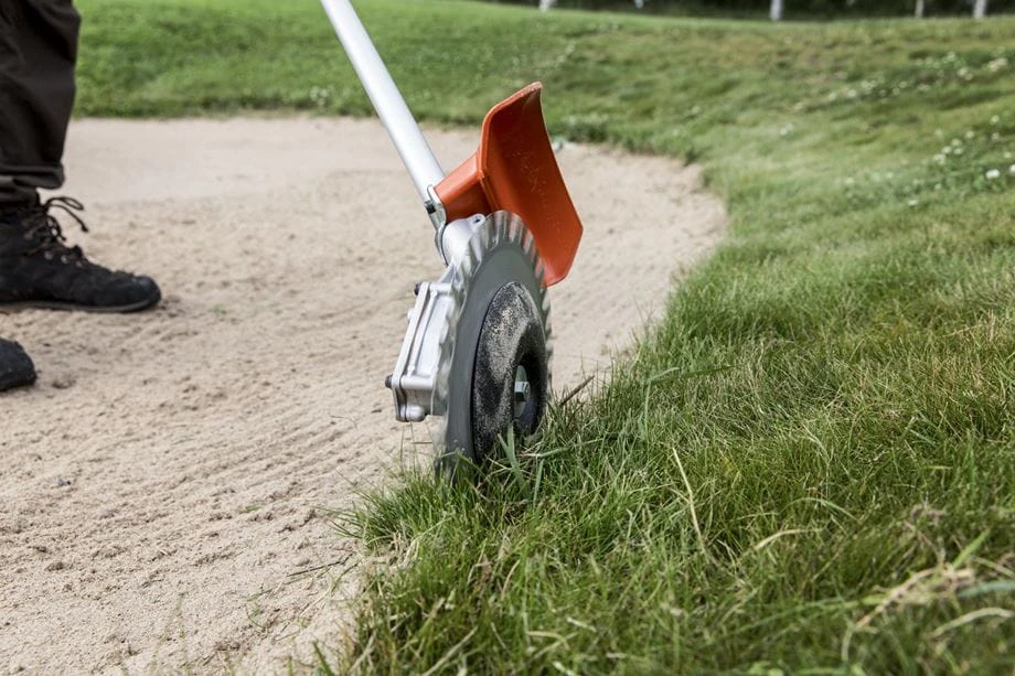 - Designed for safer and more efficient weed control and grass edging along sidewalks and on gravel paths, where an ordinary trimmer would cause the risk of throwing rocks and debris.